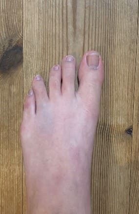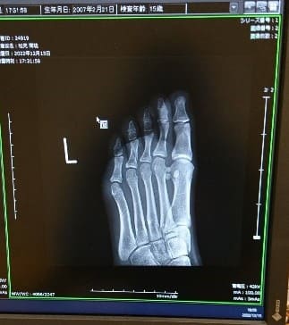 このように骨折線が入っており、 診断結果は【第4趾基節骨脱臼骨折】でした。