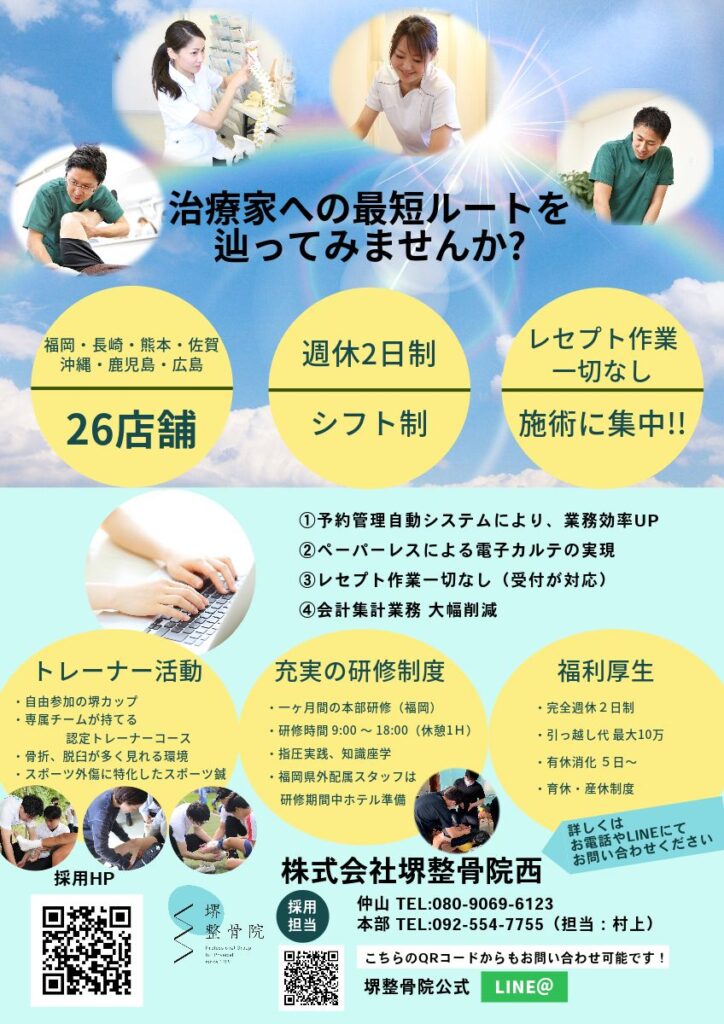 ✨2カ月の本部研修✨ 皆さんこんにちは!!人事採用担当です(^^ゞ 2カ月間の新人本部研修が終了しました!! 堺整骨院の本部研修は1日8時間(9:30-18:30)で行われます。 2か月間の研修カリキュラムに基づき現場に入る前の不安を少しでも解消するため... -